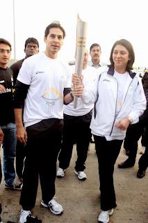John Abraham,Maria Polyzou At Marathon Flame Run